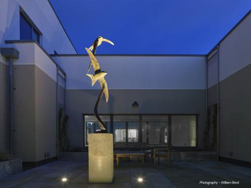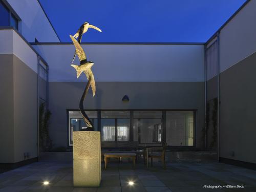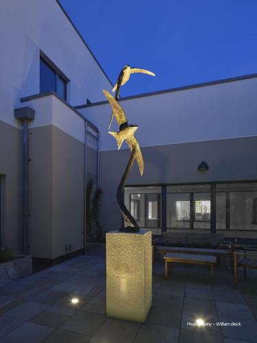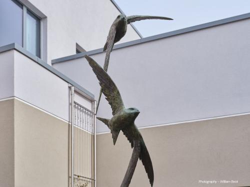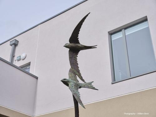 In October 2023 British wildlife sculptor Hamish Mackie shared a glimpse into his workshop, where he is busy working on a sculpture commission for the new Dyson Cancer Centre at the RUH. Entitled ‘Swifts’ and representing a pair of swifts in flight, the sculpture will form part of the inpatient courtyard in the new centre. This video, filmed in Hamish’s studio in Oxfordshire, shows the sculptor making the armature – a framework around which a sculpture is built.