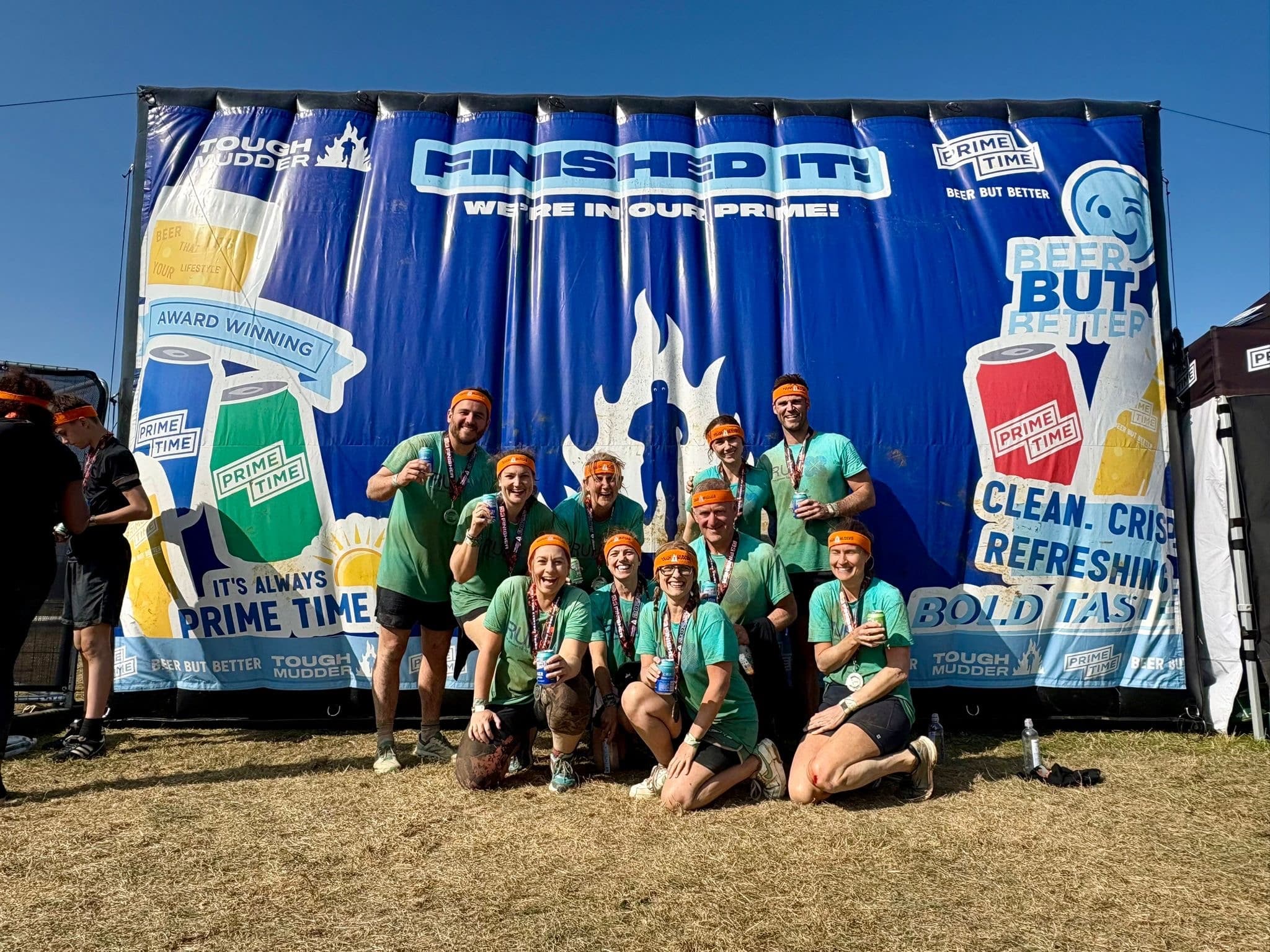 Pictured below are all the Tough Mudder fundraising team (and their cute new member – for next year?) taking on their challenge last weekend in glorious sunshine in Badminton Park.